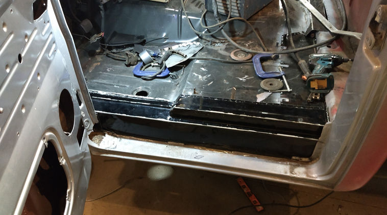 Once we had the Suburban in the shop it was time to rip the bodies off the frames and start test fitting the truck cab on the suburban frame. It didn’t take long to realize that the F100 floor pan was shot, and it would be easier to use the Suburban floor pan since it already had the frame mount locations established. Once we got the floor braced up and welded into the cab it was time to move on to the truck bed.